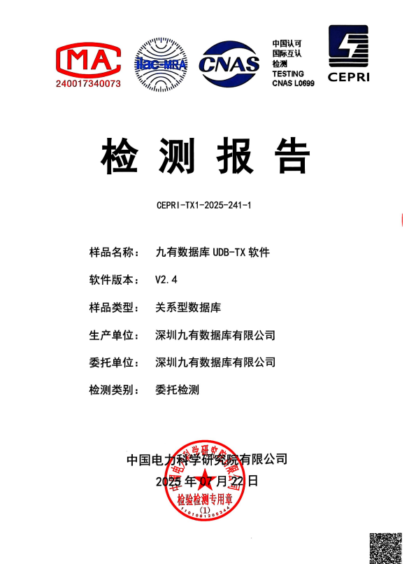 近日,深圳九有数据库有限公司自主研发的九有超融合数据库产品体系的基础底座九有数据库UDB-TX V2.4顺利通过中国电力科学研究院的严格检测认证。依据国家最新标准GB/T20273-2019《信息安全技术 数据库管理系统安全技术要求》(第三级)等规范,产品在60项安全检测中表现卓越。