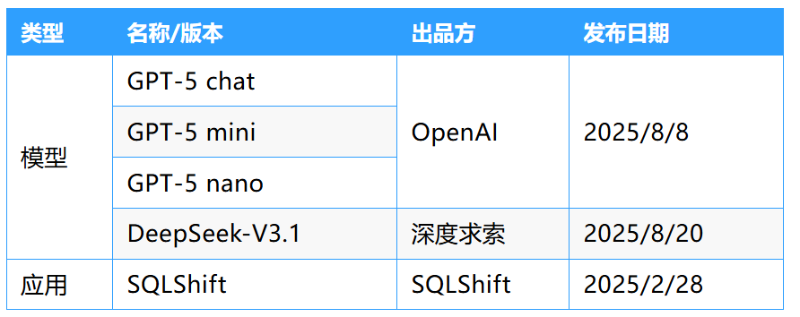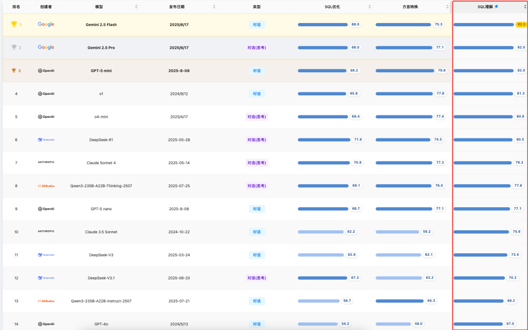 作为业界期待已久的新一代模型,GPT-5 系列在本月的评测中展现了其在 SQL 处理能力上的初步表现。