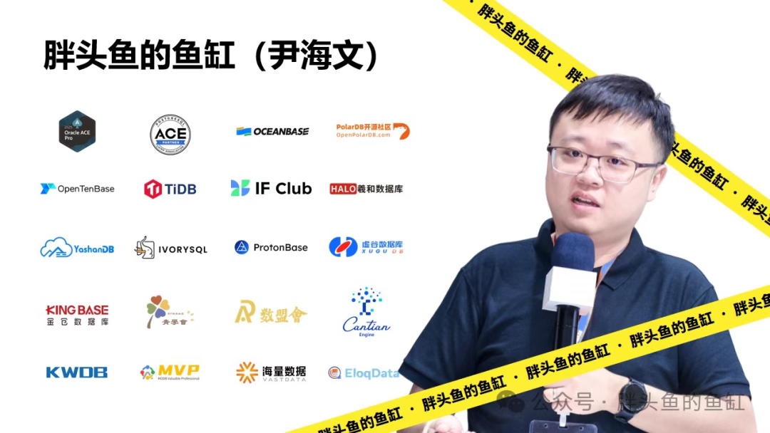 尹海文,数据库专家,Oracle ACE、PostgreSQL ACE,公众号 “胖头鱼的鱼缸” 主理人,圈内拥有 “总监” 称号。