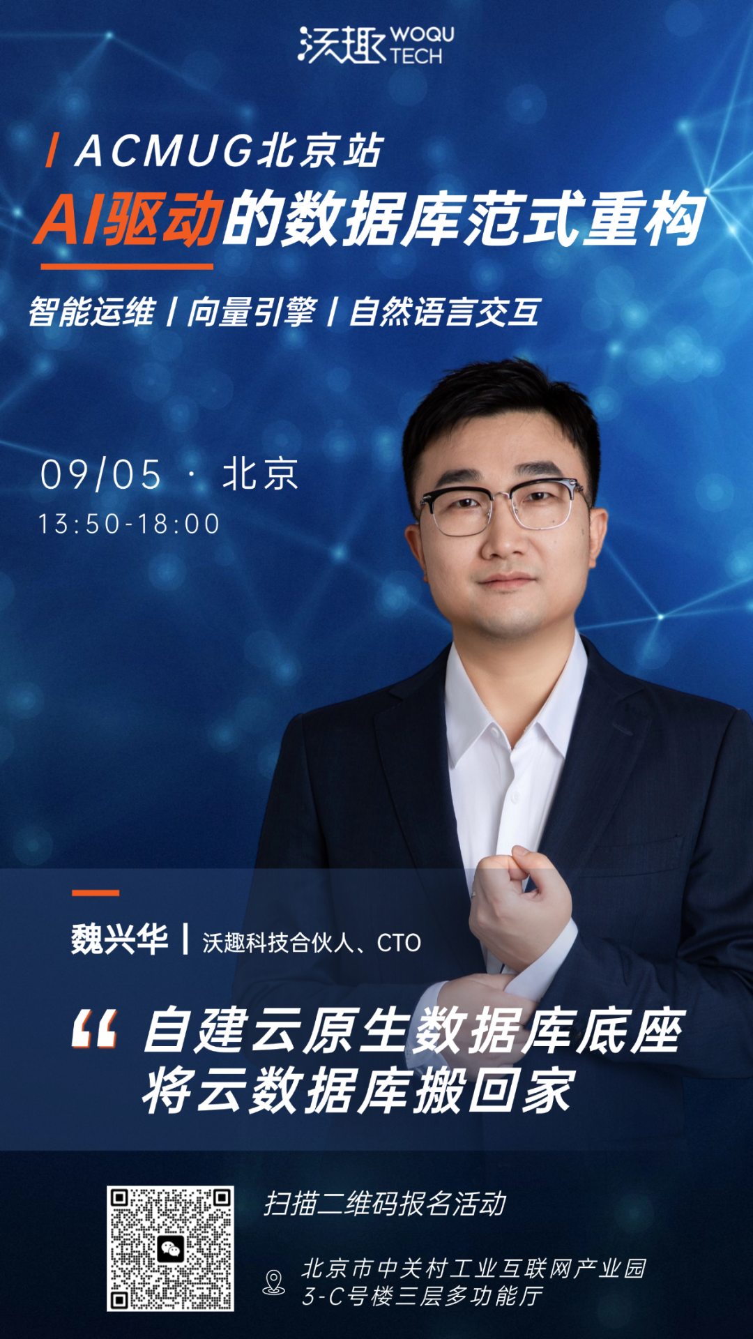 沃趣科技合伙人、CTO魏兴华也将受邀出席,并发表题为《自建云原生数据库底座,将云数据库搬回家》的主题演讲。