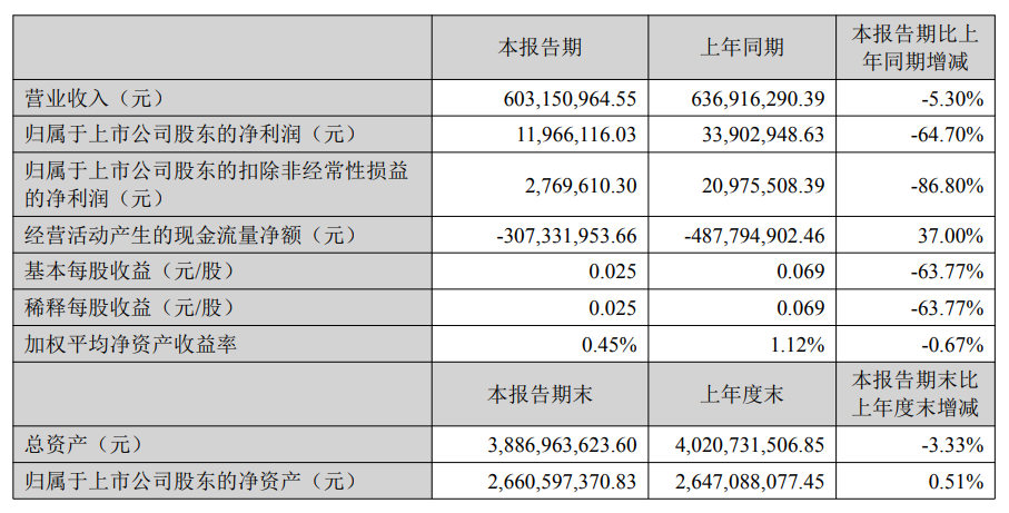 截至二季度末,公司总资产38.87亿元,较上年度末下降3.3%;归母净资产为26.61亿元,较上年度末增长0.5%。