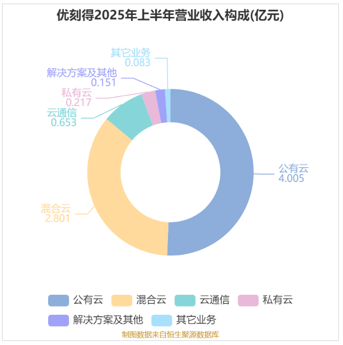 2025年8月15日,优刻得公布《2025年半年报》,2025年上半年,公司实现营业总收入7.91亿元,同比增长8.37%;归母净利润亏损7964.84万元,上年同期亏损1.08亿元;扣非净利润亏损7888.01万元,上年同期亏损1.15亿元;经营活动产生的现金流量净额为4714.22万元,同比下降25.38%;报告期内,优刻得基本每股收益为-0.18元,加权平均净资产收益率为-3.36%。报告期内,优刻得主营业务收入增长主要来源于混合云业务中的智算服务收入增加,带动营业收入达7.91亿元,同比增长0.61亿元,涨幅8.37%。