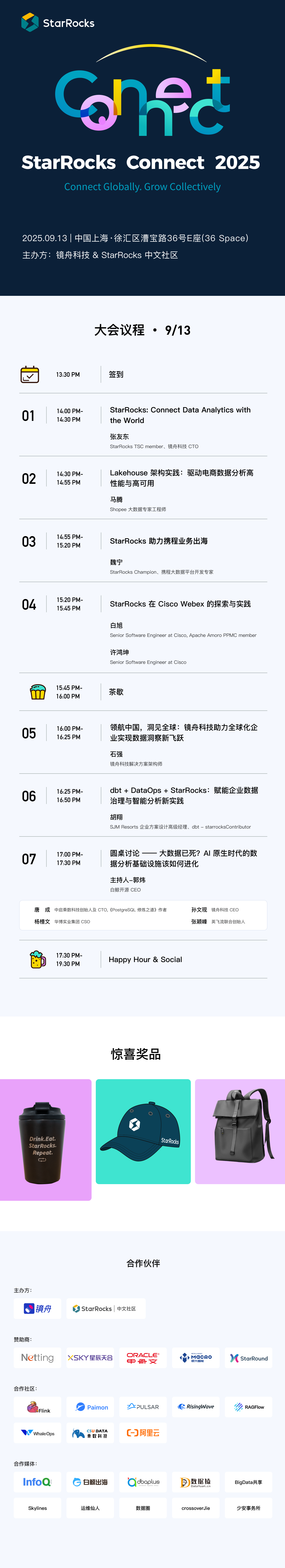 9 月 13 日下午,StarRocks Connect 2025 终于要和大家见面了。