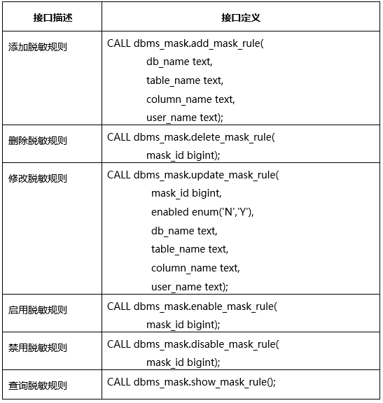 3)查询接口可以在所有节点执行,返回的是内存中存储的脱敏规则。内存中的脱敏规则和表mysql.mask_rule中存储的脱敏规则是一致的。