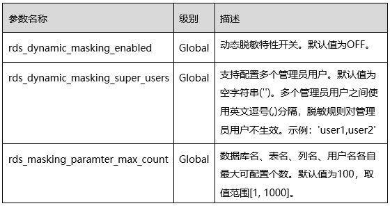 动态脱敏是数据库在将数据发送给客户端时,对数据进行脱敏的一种安全技术手段。RDS for MySQL的动态脱敏功能支持通过添加脱敏规则实现指定库、表、列、用户数据的脱敏。