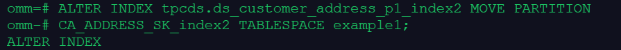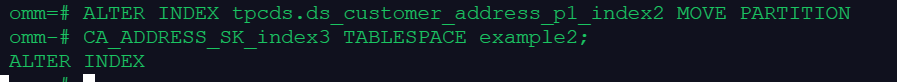 ALTER INDEX tpcds.ds_customer_address_p1_index2 MOVE PARTITION CA_ADDRESS_SK_index3 TABLESPACE example2;