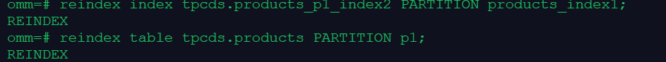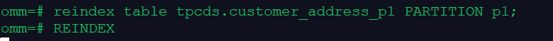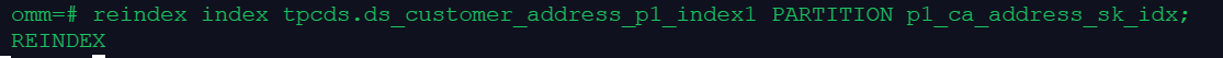reindex table tpcds.customer_address_p1 PARTITION p1;