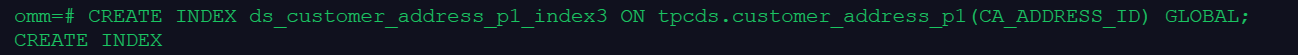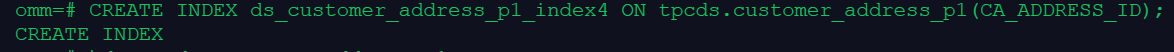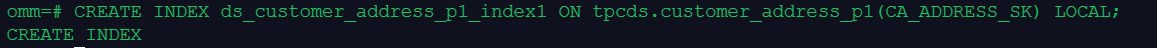 CREATE INDEX ds_customer_address_p1_index1 ON tpcds.customer_address_p1(CA_ADDRESS_SK) LOCAL;