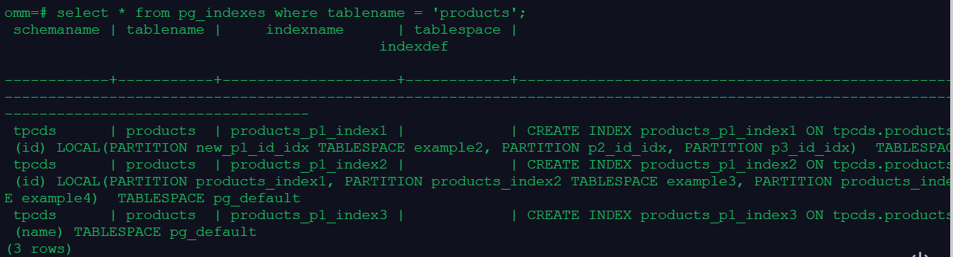 4.使用\d+、系统视图pg_indexes和pg_partition查看索引信息