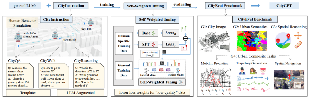 CityGPT的框架结构如图1所示,包括三个核心组件:CityInstruction、SWFT和CityEval。