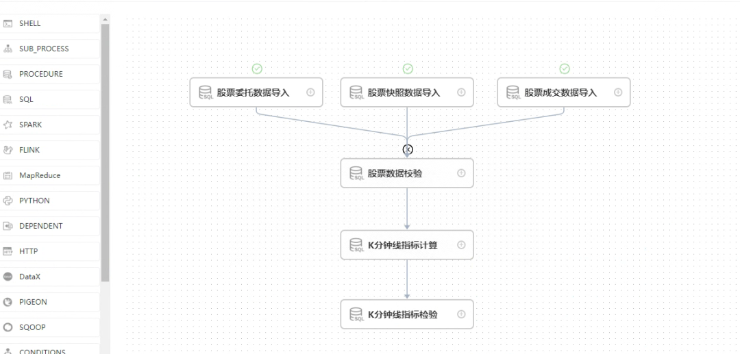 不过,在实际生产环境中,源数据下载、数据处理、数据入库、数据校验、指标计算等任务之间存在先后关系和条件关系。如果在 DolphinDB 脚本中编写相关的逻辑关系代码,会造成与实际任务不相关的脚本冗余。而且一旦业务变动,就需要增加或删减部分任务,相互依赖的任务之间的关系代码也需要变动,更新迭代效率较低。