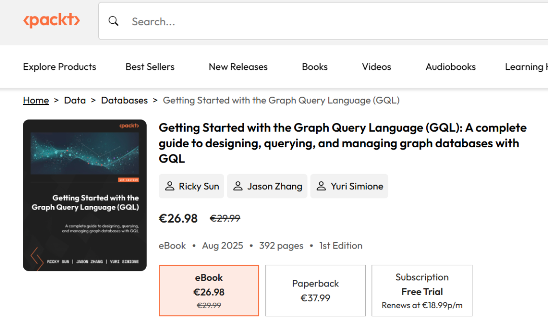 据悉,《Getting Started with the Graph Query Language (GQL)》(图查询语言入门(GQL) ) 作为嬴图团队海外发行的第二本行业专著,其诞生背后是团队自 2019 年起便深耕图数据库技术领域的持续积淀。多年来,嬴图团队始终聚焦图技术的理论研究与实践落地,凭借对行业趋势的敏锐洞察和对技术细节的精准把控,已面向海内外持续输出兼具理论深度与实践指导价值的多部专著。此次《图查询语言(GQL)入门》的出版,不仅是团队专业研究成果的又一次集中呈现,更彰显了其在 GQL 领域的技术话语权与行业引领力,为全球开发者理解和应用 GQL 提供了兼具专业性与权威性的参考范本。