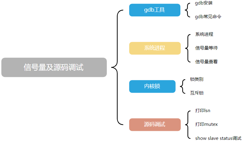 本篇文章就来介绍一下MySQL信号量和源码的调试,知识结构图如下: