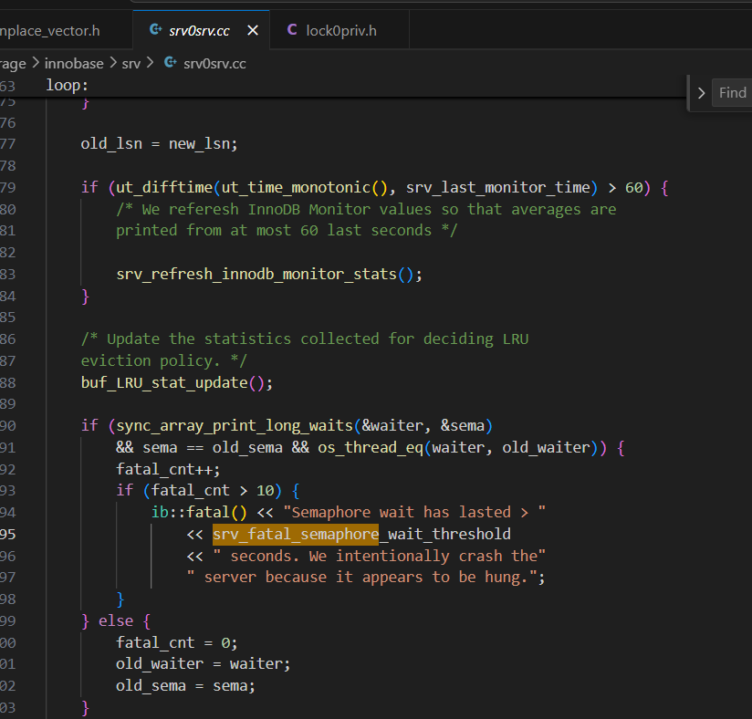 生产中你可能经常遇到过MySQL数据库日志中有这种报错,信号量超时过长导致MySQL实例夯住或崩溃,那么为什么超过600s就会崩溃呢,可以从源码中探究一番。