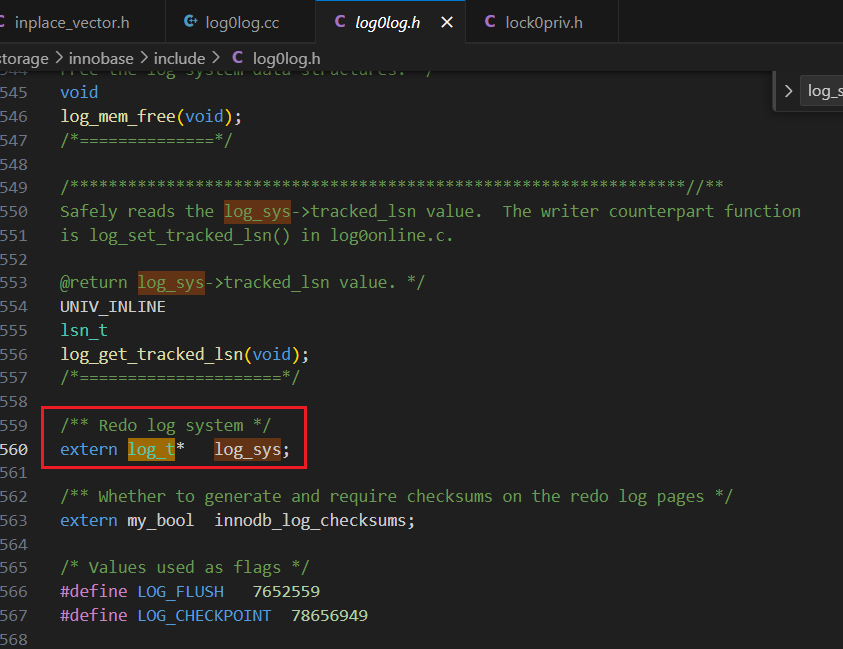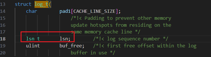 而对于lsn字段,则是log sequence number,定义也是在log0log.h文件中。