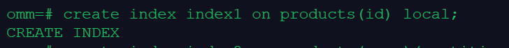 create index index1 on products(id) local;