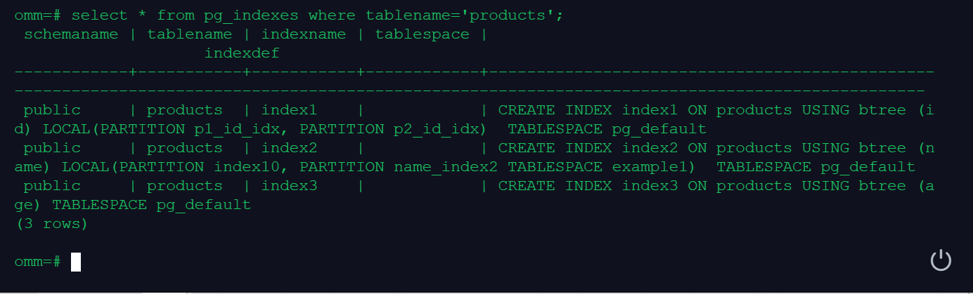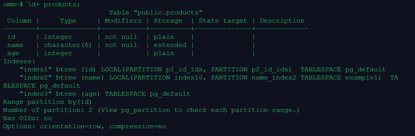 (四)、使用\d+、系统视图pg_indexes和pg_partition查看索引信息