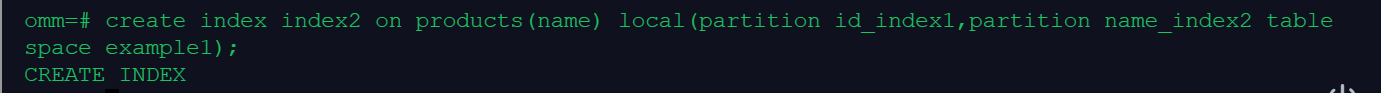 create index index2 on products(name) local(partition id_index1,partition name_index2 table space example1);
