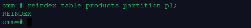 reindex table products partition p1;
