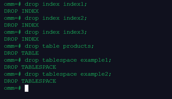 drop tablespace example1;