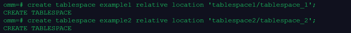 create tablespace example1 relative location 'tablespace1/tablespace_1';