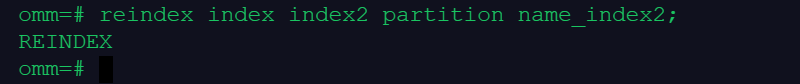 reindex index index2 partition name_index2;
