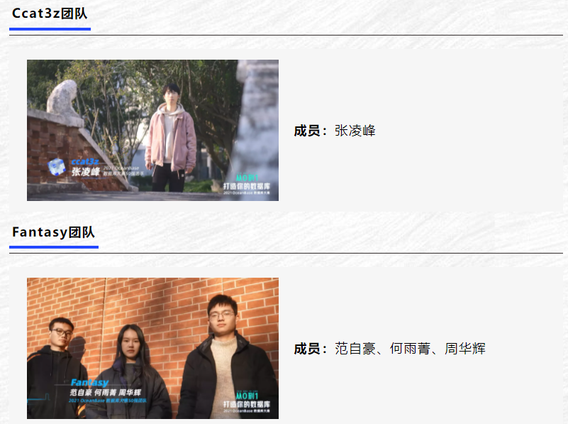 Ccat3z张凌峰:作为数据库的入门者,我通过初赛对数据库的各个模块有了基本认知,这为下一步的比赛和学习,开发或研发都做好了准备。