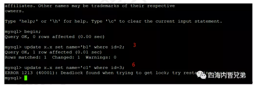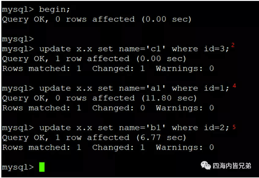 3 update t2 set xx where id=2; 4 update t1 set xx where id=1;