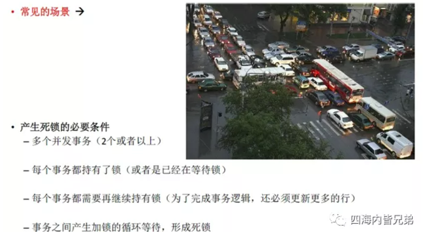 1执行了没有及时提交,导致4堵住了。这样245这三步都因为4在等待而走不下去,而3在等5,所以35这两步因为3在等也走不下去了。只要1一旦提交。就可以进入45两步,这个时候6一旦出现就是最简单的死锁。