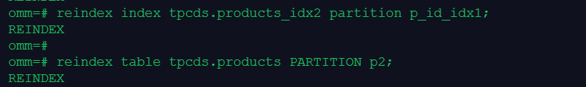reindex index tpcds.products_idx2 partition p_id_idx1;
