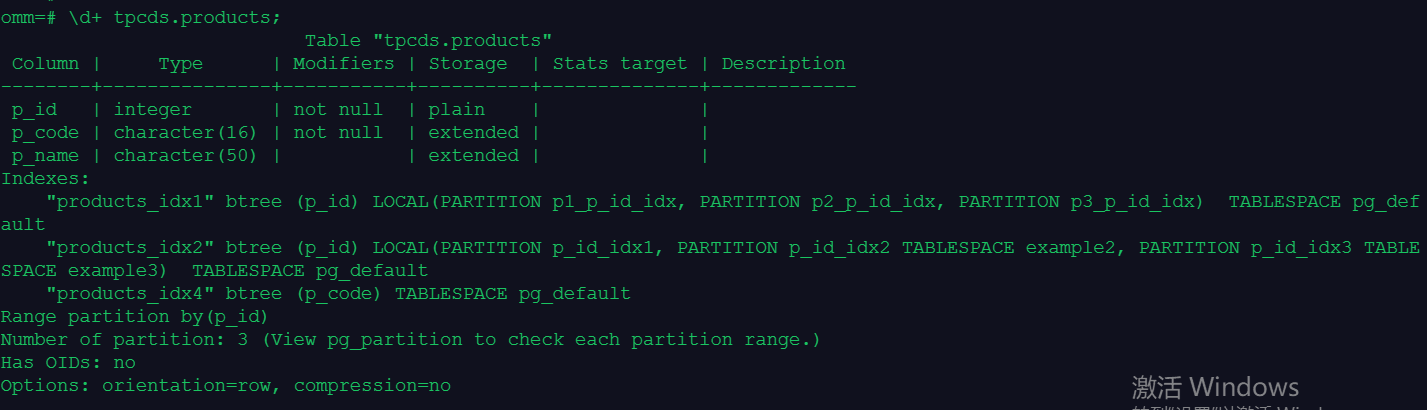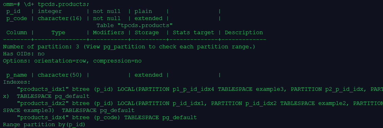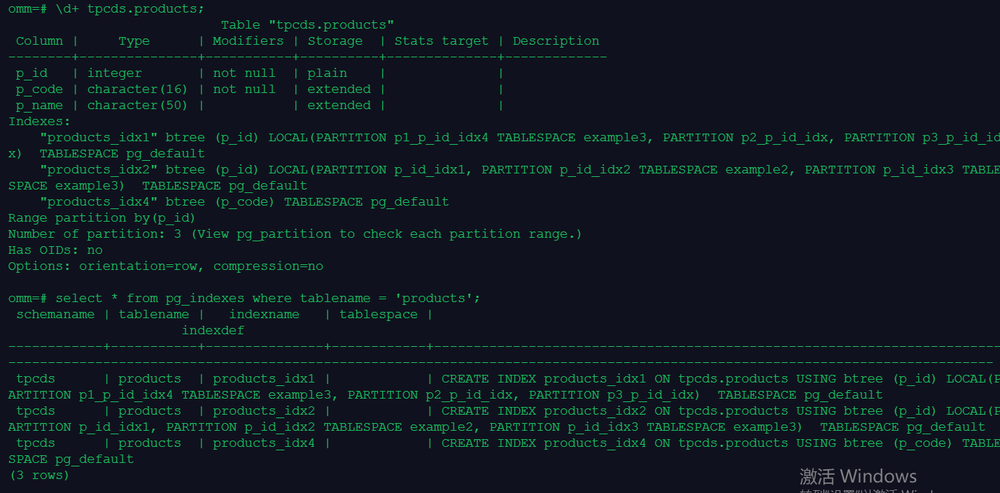 4.使用\d+、系统视图pg_indexes和pg_partition查看索引信息