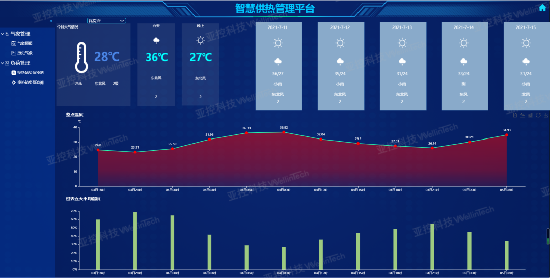 气象系统数据对接:对接气象网数据,获取实时温度等参数、获取未来五天气象参数,指导供热调度运行。
