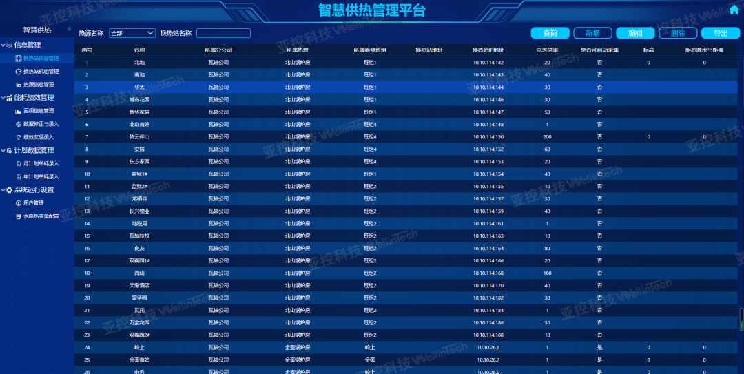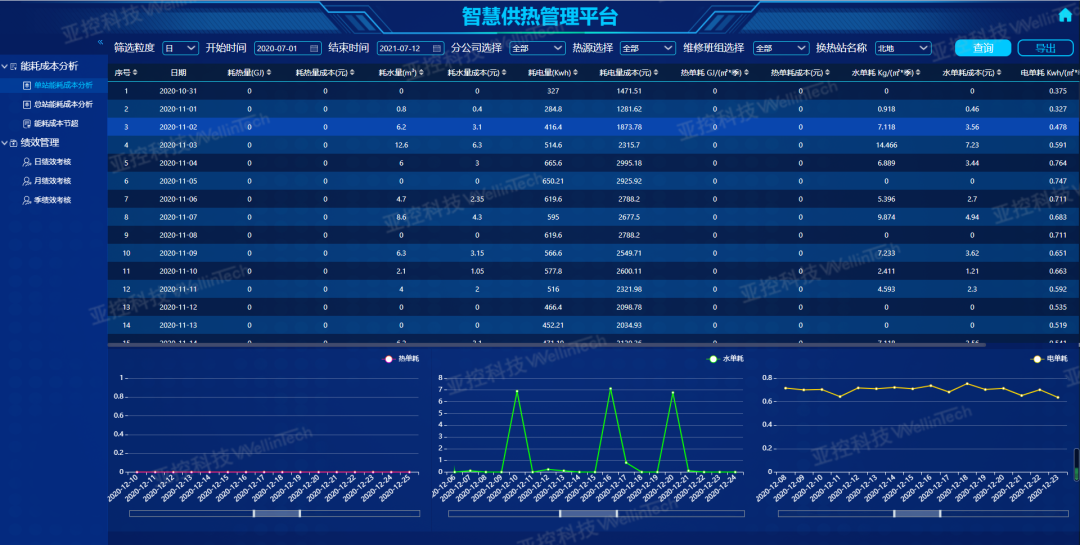 计划考核制定:供热伊始,针对每个站设置能耗考核的计划指标。