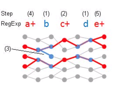 从第一个和最后一个rare label分别向后、向前搜索,使得path的label能连成一个完整的满足正则表达式的字符串。