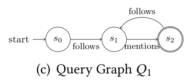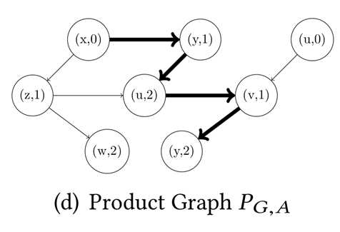 本文将介绍解决regular path query(RPQ)相关问题的四种算法。ϕ(p)指的是path p的label串,L(R)指的是正则表达式R的正则语言。RPQ问题给定一个数据图和一个正则表达式R,想要找到这个数据图上满足ϕ(p)∈L(R) 的路径p。四个算法给出的输出不完全相同:有时,我们只需要给出这个路径的起点和终点;有时要给出整个路径;或者只需要在给定起点终点时返回这两个点之间是否存在满足ϕ(p)∈L(R) 的路径。Algorithms | Query类型 | 解 |