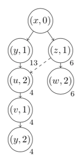 Conflict predecessor: 在spanning tree中,从根节点(x,0)出发的路径依次访问两个节点(v,s)(v,t),且(v,s)是路径上第一个vertex参数为v的节点,如果(v,s)(v,t)之间有conflict, 那么这条路径上它们之间的所有节点都称作conflict predecessor。
