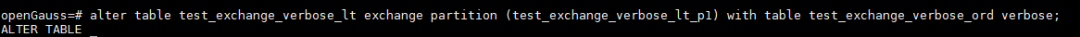 ALTER TABLE [ schema. ] tableEXCHANGE { partition_extended_name }WITH TABLE [ schema. ] table[ { WITH | WITHOUT } VALIDATION ] [VERBOSE]