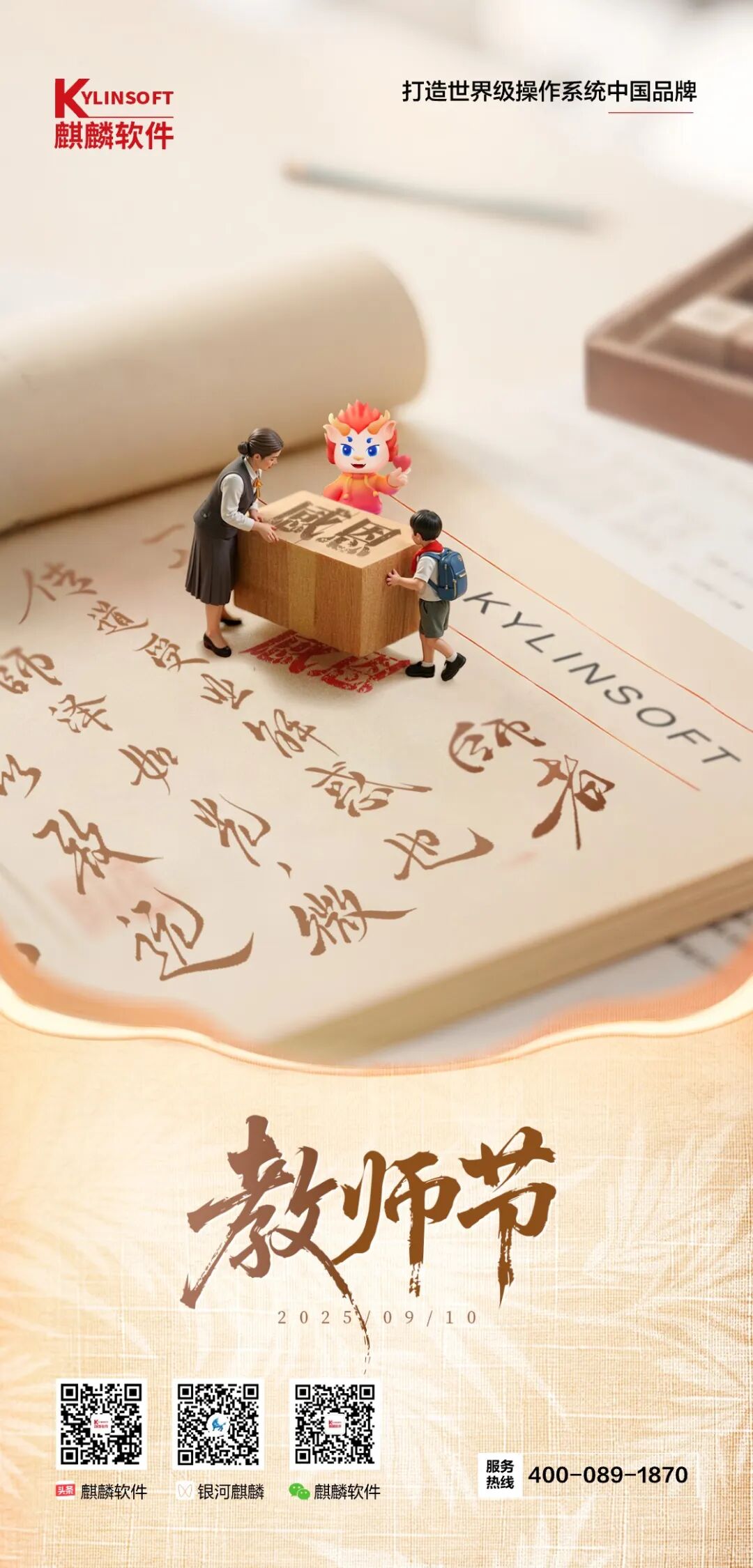 强国必先强教,强教必先强师。麒麟软件致力于打造国家网信事业发展的人才引擎,积极推动新时代网信教育高水平教师队伍建设。今天是第41个教师节,麒麟软件召开“教师节教师表彰大会”,为所有参与麒麟操作系统网信教育的老师们送上节日祝福。
