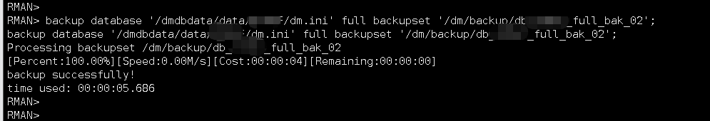 ./dmrmanbackup database '/dmdbdata/data/zz/dm.ini' full backupset '/dm/backup/db_zz_full_bak_02';