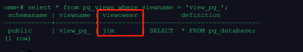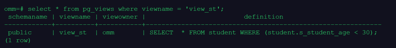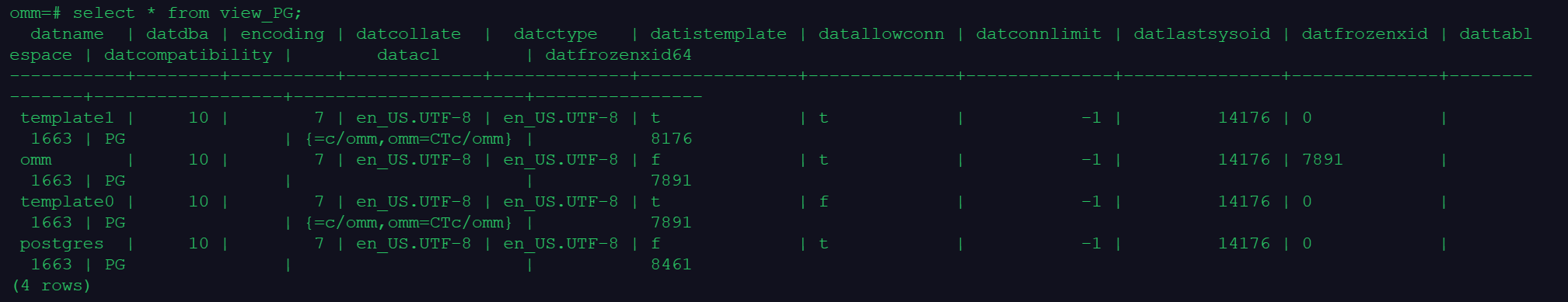 SELECT * FROM PG_DATABASE ;1.2在用户表上创建视图