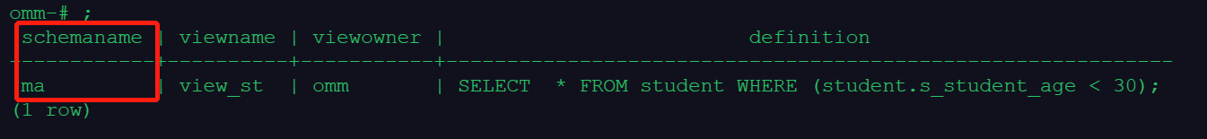 ALTER VIEW view_st SET schema ma;注:view_st变为ma.view_st!!!