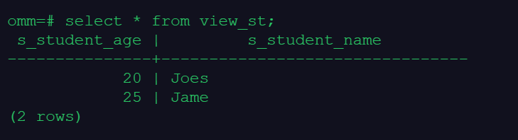 SELECT * FROM student WHERE s_student_age<30;1.3查看视图