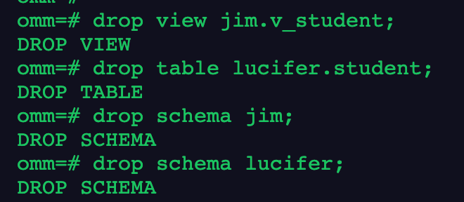 2、创建一个用户表student,并在用户表上创建视图,修改视图schema;