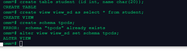 2.创建一个用户表student,并在用户表上创建视图,修改视图schema;