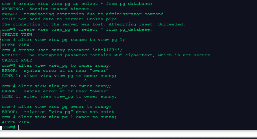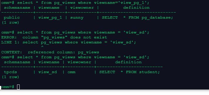 1.为系统表PG_DATABASE创建视图,重命名视图并修改owner为jim,