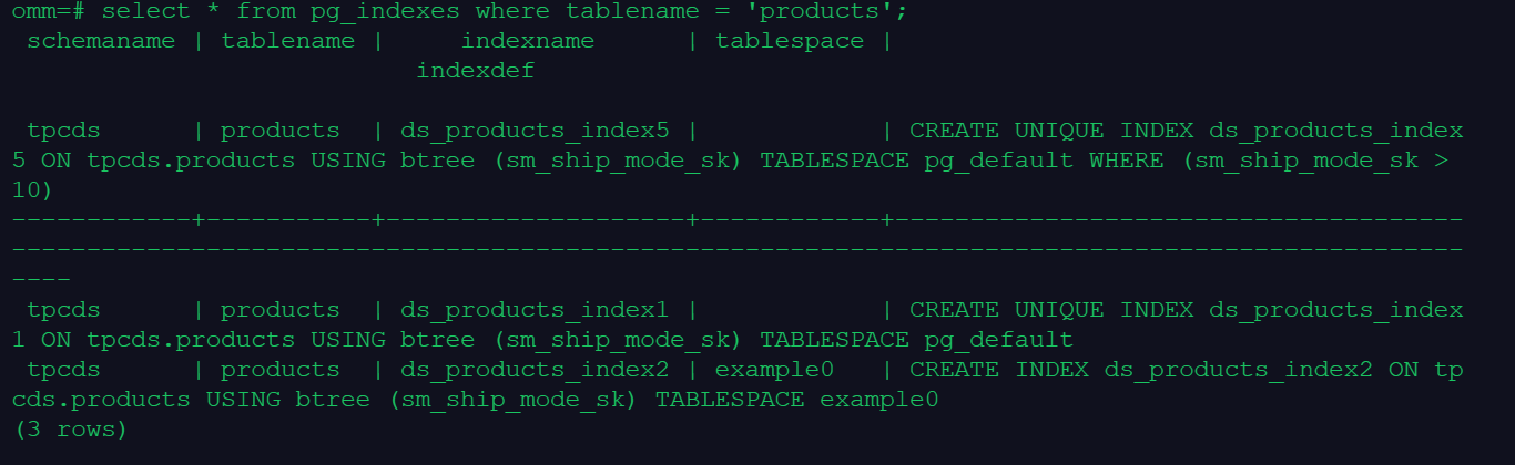 CREATE UNIQUE INDEX ds_products_index3 ON tpcds.products(SM_SHIP_MODE_SK) WHERE SM_SHIP_MODE_SK>10;