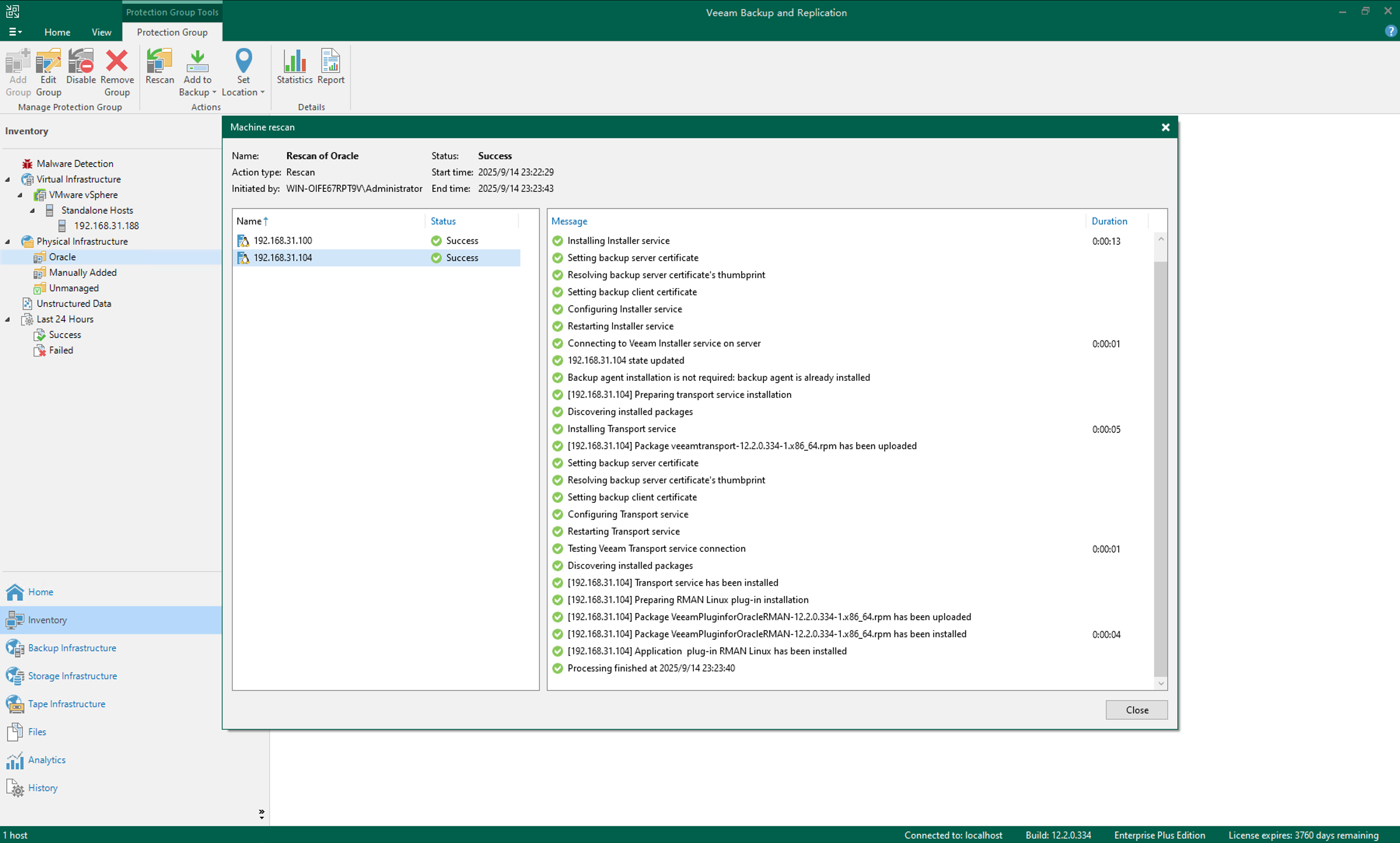 安装完成后,在 Veeam 控制台手动添加一下主机即可:
