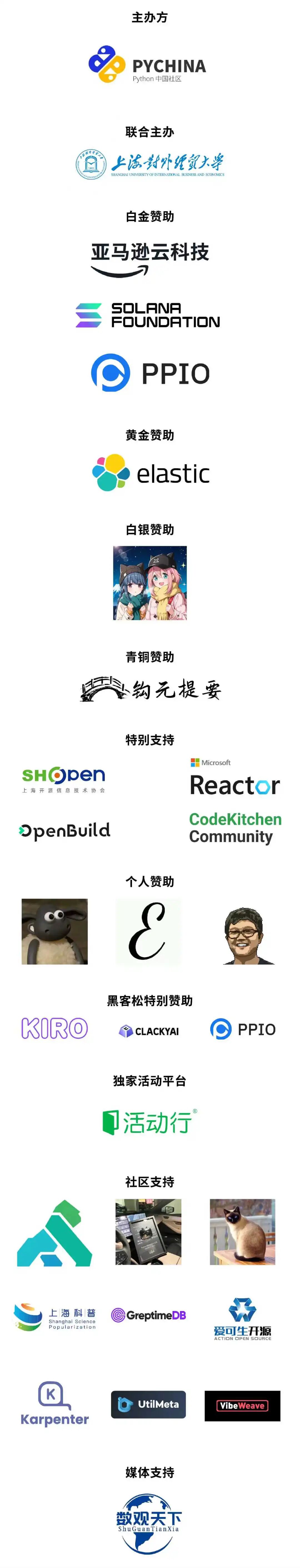 大会将采用“1个主会场 + 4个分会场 + 开源松 + Vibe Coding 黑客松 + 社区开源集市展”的多元形式,汇集国内外 Python 领域专家与实力开发者,立足 AI 新纪元,为大家呈现一场丰富、精彩、趣味,且充满活力的 PyCon 盛会。