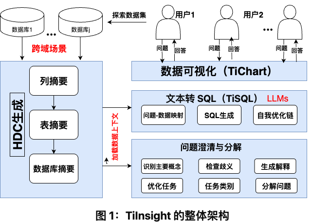 这些挑战共同构成了一个恶性循环:复杂的模式加剧了对模糊意图的困惑,而泛化能力的缺失又导致错误的SQL生成,最终使下游的可视化毫无意义。TiInsight的架构设计正是为了打破这一循环。