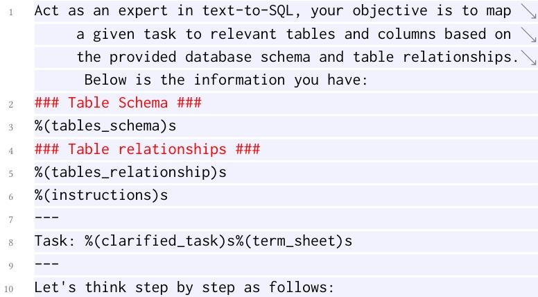 在生成SQL前,TiSQL采用基于Map-Reduce的两阶段框架高效筛选相关表和列。首先,通过向量数据库进行粗粒度召回,检索出最相关的N个候选表;随后,在细粒度筛选阶段,LLM分析每一组候选表的HDC摘要,精确判断任务必需的表和列,从而得到精简的模式信息。